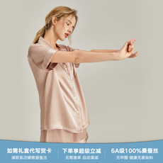 美标长袖真丝睡衣女春夏100%桑蚕丝凉感丝绸蕾丝短袖家居服套装秋