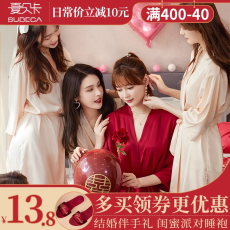 婚礼晨袍女新娘伴娘团冰丝绸结婚睡衣睡袍红色浴袍女长款夏季薄款