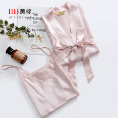 美标吊带真丝睡袍浴袍晨袍女春夏重磅桑蚕丝睡裙睡衣丝绸家居服秋