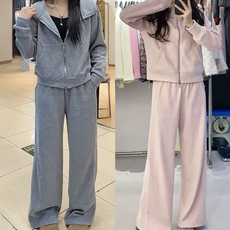 欧货时尚休闲套装女秋冬新款洋气高级感连帽拉链卫衣阔腿裤两件套