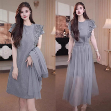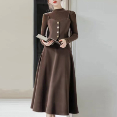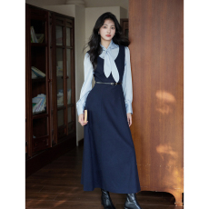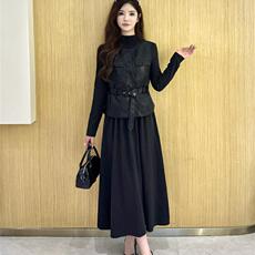 2025新款春秋款时尚百搭连衣裙女气质显瘦中长款裙子两件套套装潮