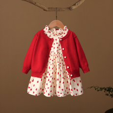 宝宝秋季套装女2025新款洋气时髦小童装早秋红色开衫连衣裙两件套