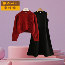 果拉拉中国风红色毛衣背心裙两件套拜年服女童连衣裙套装过年衣冬