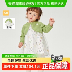 拉夏贝尔女童秋季连衣裙套装25新款洋气韩系甜美儿童背心裙两件套