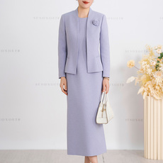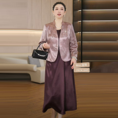 新款时尚气质轻奢妈妈装紫色两件套连衣裙中老年端庄大气减龄套装