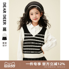 【门店同款】迪迪鹿童装女大童套装春秋款背心连衣裙两件装