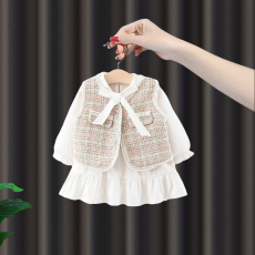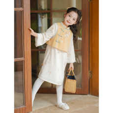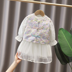 女童春季套装连衣裙2025新款中国风儿童春装宝宝坎肩公主裙两件套