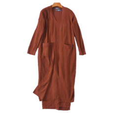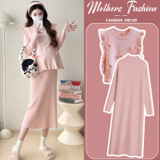 2025早秋新款韩风宽松显瘦长袖镂空针织衫+连衣裙两件套装女