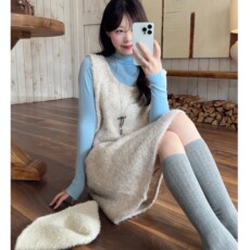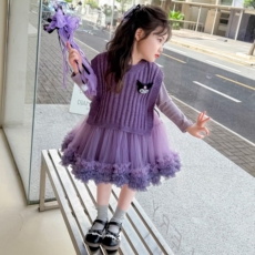 小女孩长袖连衣裙套装宝宝卡通针织马甲两件套甜美女童好看衣服秋