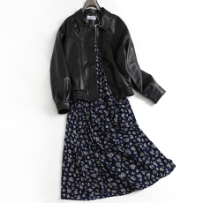 XWI欣未上班通勤穿搭套装女秋季新款立领夹克外套连衣裙两件套