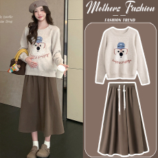 大码女装胖mm2-300斤时尚两件套黄色针织毛衣半身连衣裙套装春秋