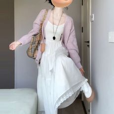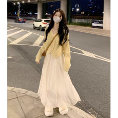 记忆的起点连衣裙套装2025秋新款针织罩衫吊带裙两件套69AQ80017