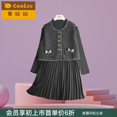 女童小香风套装裙子儿童秋冬季新款中大童灰马甲百褶连衣裙两件套
