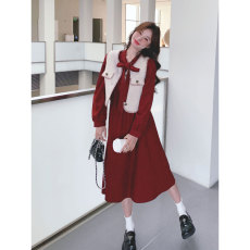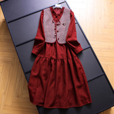 氛围感穿搭马甲配红色衬衫连衣裙女春秋2025年绝美小香风两件套装
