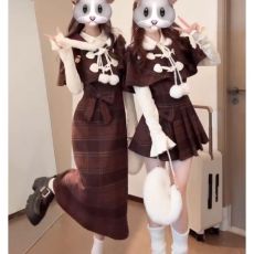 2024年新款茶系穿搭盐系轻熟早秋季女连衣裙子绝美奶fufu两件套装
