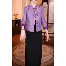 喜唐新中式短款紫色外套连衣裙两件套套装裙女春秋新款妈妈高级感