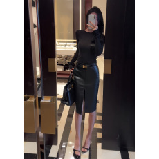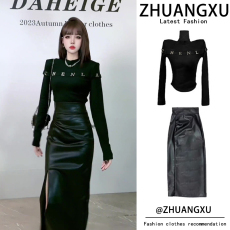 轻熟风御姐范早秋穿搭开叉中皮裙气质连衣裙子两件套装2025新款女