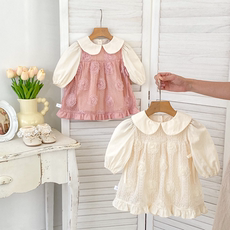春秋季新款婴儿包屁衣甜美公主花朵连衣裙两件套女宝宝哈衣裙套装