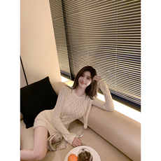 法式温柔风奶系穿搭毛衣针织连衣裙套装春秋开衫吊带长裙两件套女