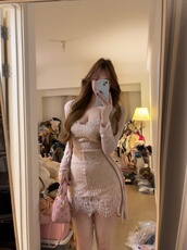 荔桃想睡觉ya【蜜桃恋人】纯欲蕾丝拼接吊带连衣裙开衫外套两件套