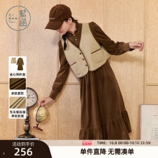 紫涵复古美拉德绒感中长款连衣裙马甲背心外套两件套装女冬季新款