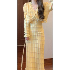 Cycle Document【懒人两件套】开衫长袖针织衫+u领吊带连衣裙套装