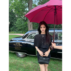 夏媛原创 All black 高贵千金感黑色斗篷针织外套连衣裙两件套
