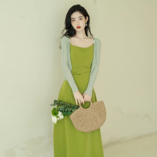 两件套法式绿色连衣裙夏2025新高级感气质绝美超仙吊带开衫6904