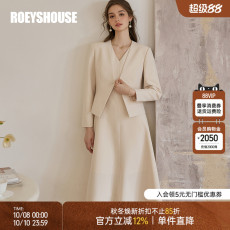 罗衣气质修身两件套通勤无领西装外套无袖大摆连衣裙套装11646