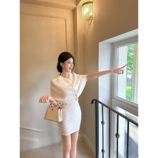 【华尔兹套装】OSA欧莎秋季新款小香风毛衣针织外套+连衣裙两件套