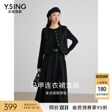 衣香丽影2025年秋装新款黑色赫本风马甲短外套连衣裙套装女两件套