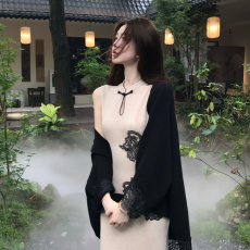 杜总家 萋萋暗香*原创纯欲轻奢氛围感披肩开衫两件套挂脖连衣裙女