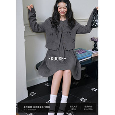 JustQin【玛黑区千金】秋冬矜贵气质小香风短外套连衣裙两件套装