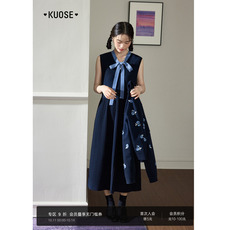 阔色碎花毛衣开衫领结背心裙两件套装2025秋冬季新款女连衣裙上衣