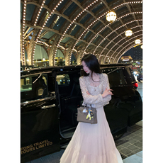 杜总家 湾湾名媛*原创初秋气质性感针织开衫蕾丝两件套女连衣裙