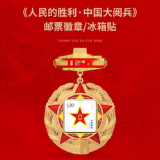 人民日报社《环球人物》出品 人民的胜利 中国大阅兵 纪念徽章 文创冰箱贴 纪念品收藏 正版新徽章为了民族解放与世界和平套装邮票