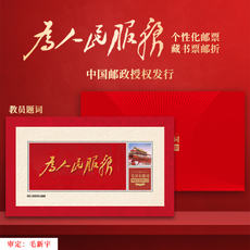 中国邮政授权发行教员题词藏书票为人民服务个性化邮票邮折