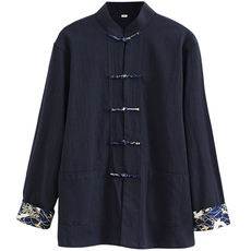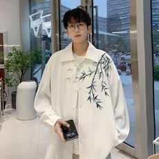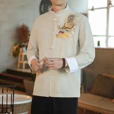 刺绣唐装中国风秋季棉麻长袖衬衫男复古宽松汉服大码中式夹克外套