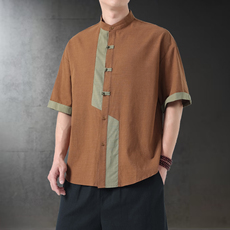 文艺复古 新中式亚麻衬衫男款改良中国风男装夏季薄款棉麻衬衣