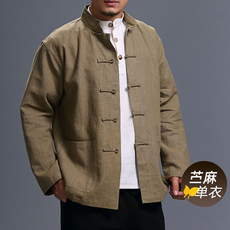 春夏季中国风亚麻汉服男装斜襟古风唐装宽松棉麻中式禅意外套道袍