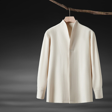 秋冬新中式男装中国风禅意衬衣V领开衫中式衬衫汉服外套老钱风