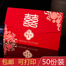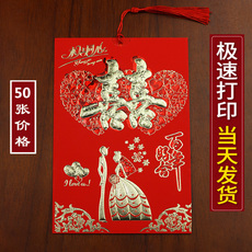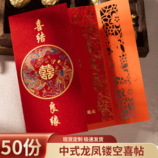 结婚请帖50张中国风创意喜帖婚庆用品中式请柬请帖婚礼个性邀请函