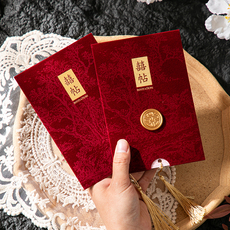结婚请柬丝绒布酒红高端请帖流苏烫金喜帖高级感植绒中国风邀请函