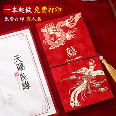 订婚书结婚刺绣婚书婚庆中国风卷轴聘书送日子邀请函高级喜帖请柬