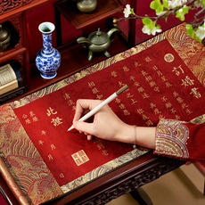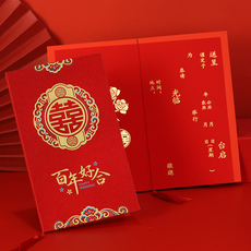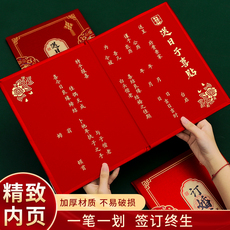 空白婚书 万年红宣纸册页书法作品专用折页聘书结婚请柬小楷请帖古风奏折本订婚送日子手写中式 中国风订婚书