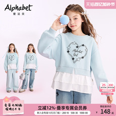 棵初2026春季新款中大女童圆领字母印花卫衣美式复古简约百搭上衣