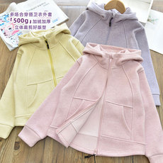 女童冬季加绒连帽外套中大儿童夹棉糯米绒棉衣卫衣校服神器深秋冬