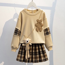 卷妈童品26春秋中大女童套装学院风Polo衫卫衣百褶裙裤运动两件套
