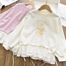 女童韩版甜美花边拼接卫衣 中大儿童宽松休闲打底上衣26春
