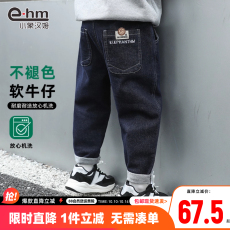 植木童装男童裤子2025新款春秋中大童宽松水洗牛仔裤长裤儿童裤子